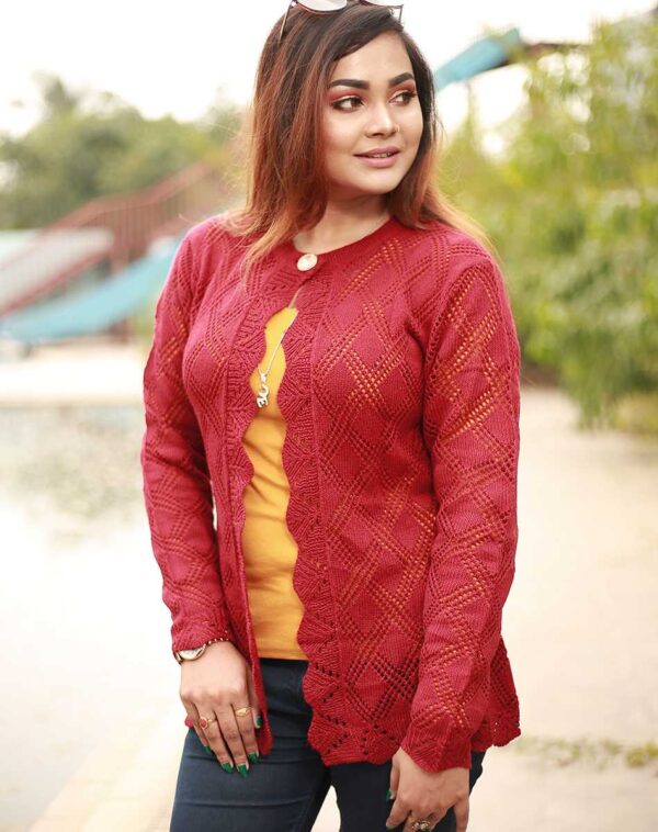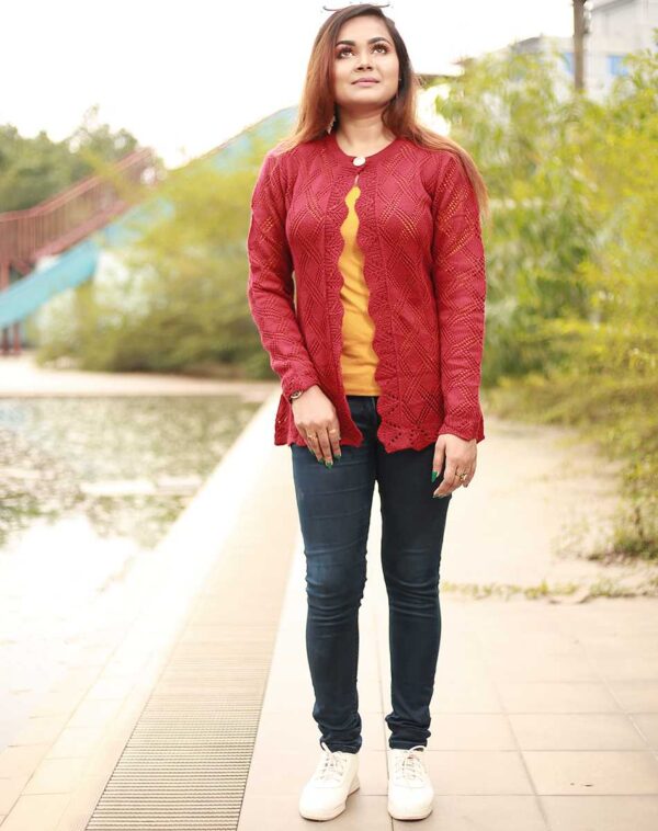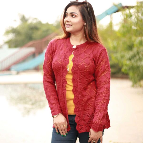 Be the first to review “Maroon Color Hand Knit Fashionable Short Cardigan for Women”