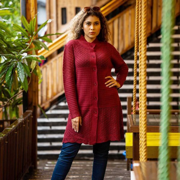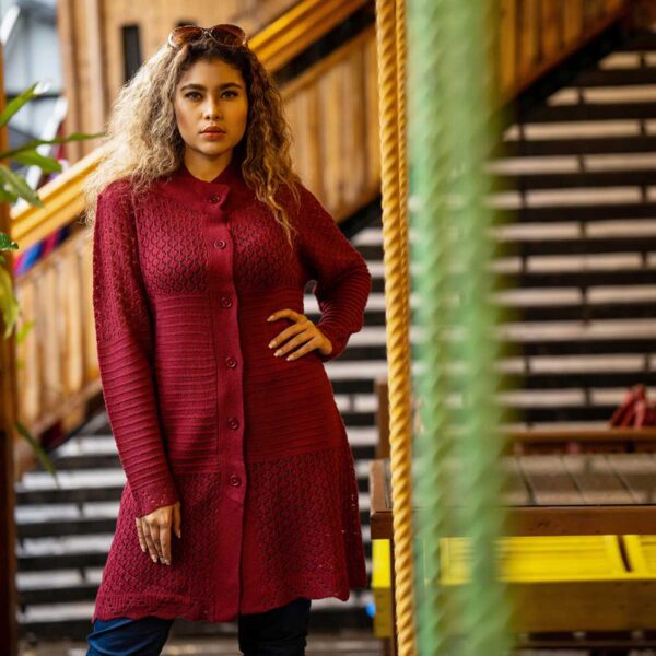 Be the first to review “Women Maroon Jacquard Fashion Design Front-Open Sweater” Cancel reply
