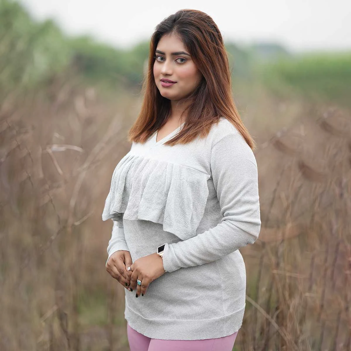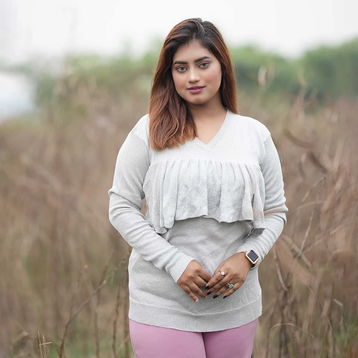 Step into comfort and style with the DM-555 Light Grey V-Neck Layered Knit Sweater. Designed with a soft pleated front layer, this sweater brings a chic twist to your winter collection. Made from a cozy blend of Viscose, Wool, and Rayon, it offers warmth, breathability, and a gentle stretch for an easy fit. Perfect for both casual days and light outdoor wear.