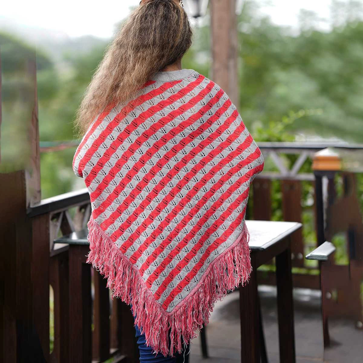 Stay warm and stylish with this red and grey striped knit poncho, designed to bring a perfect mix of comfort and trend to your winter wardrobe. The V-necklinesoft ribbed cuffs, and fringed hemline add a chic touch, while the lightweight knit fabric provides cozy warmth without the bulk. Its free-flowing fit flatters all body types — ideal for layering over tops, shirts, or dresses for an effortlessly elegant look.